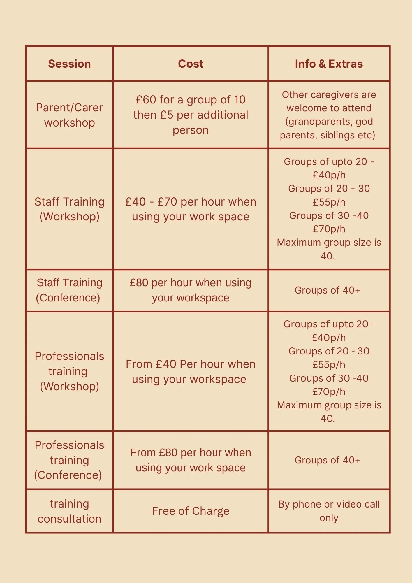A £25 deposit is required for any booking that is £100 or more or any booking that is more than 2 months in advance. We will return the deposit for any sessions cancelled with at least 2 weeks notice.